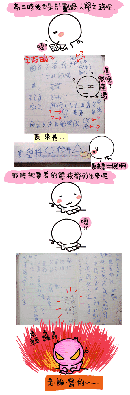 隨意翻以前的筆記本發現這東西 可惡阿~不知道是誰在我筆記本上偷寫= = 嘖 果然是死亡筆記本阿..寫上去..實現了...囧~ 現在許多學校已經陸續開學了吧? 大一新生們好好加油吧~